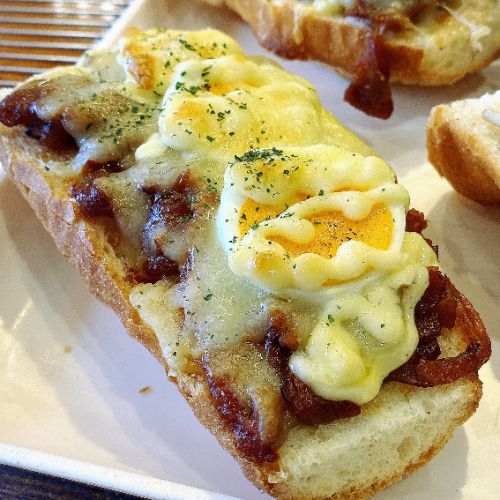 オープンサンド(照り焼きチキン、ゆで卵)
