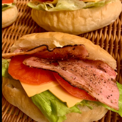厚切りベーコンのチャバッタサンド