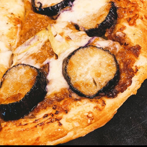 肉味噌とナスのピザ