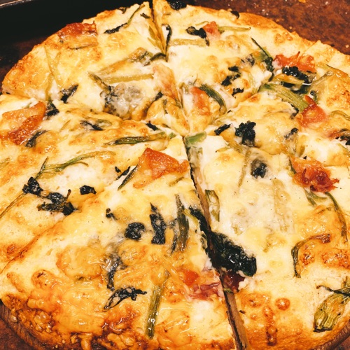 くんちゃまベーコンとゴルゴンゾーラのピザ