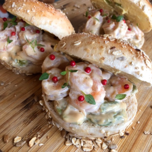 [サンドイッチ]エビとアボカドのベーグルサンド